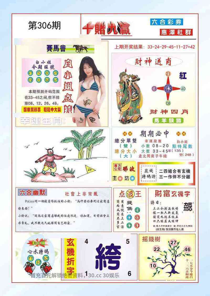 306期赢钱特码诗:二四組合有玄機,三一作伴不分離 |